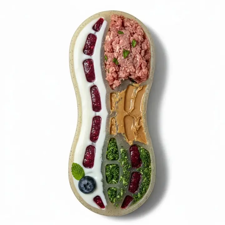 Conçue avec de multiples compartiments de différentes tailles et profondeurs, l’Arachide vous permet de séparer les aliments et de créer une expérience culinaire variée. Garnissez-la de croquettes, de viande crue, de pâté, de légumes, de fruits, de yaourt ou de beurre de cacahuète pour chien. Votre compagnon devra lécher, chercher et travailler pour atteindre chaque bouchée, ce qui l’occupe bien plus longtemps qu’un repas classique.