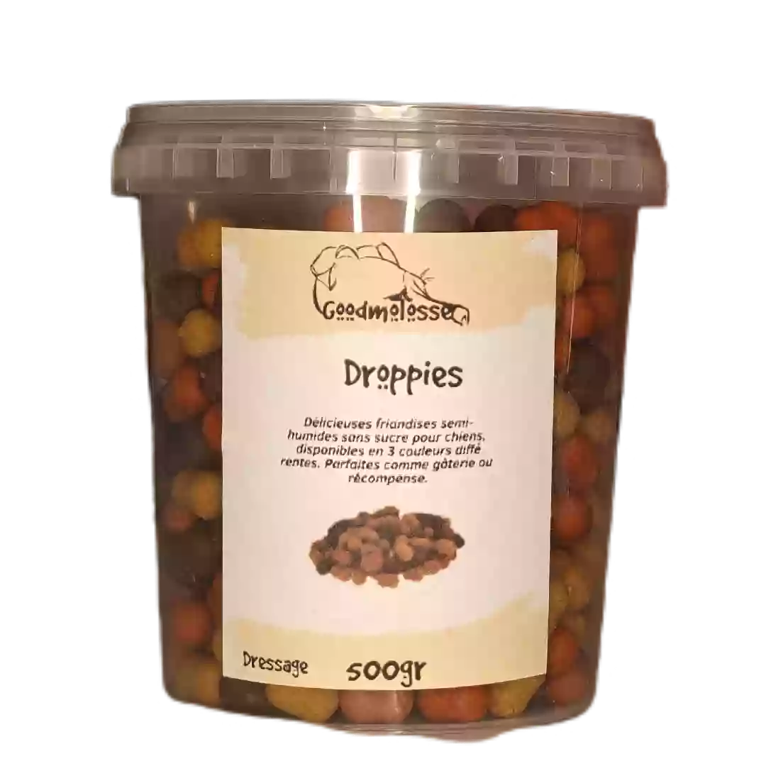Délicieuses friandises semi-humides sans sucre pour chiens, disponibles en 3 couleurs différentes. Parfaites comme gâterie ou récompense.