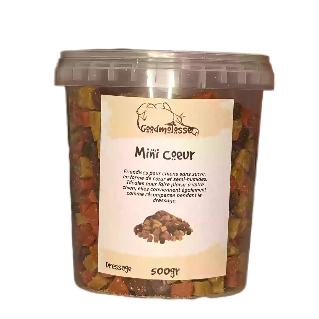 Friandises semi-humides en forme de cœur sans sucre pour chien. Pour chouchouter, mais convient également comme récompense pendant l’entraînement.