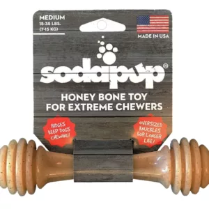 Cet os en nylon ultra-résistant, façonné en pilon à miel, est spécialement conçu pour affronter même les mâcheurs les plus déterminés. En partenariat exclusif avec Soda Pup, référence mondiale des jouets canins durables, nous avons perfectionné notre gamme pour répondre aux exigences des chiens les plus puissants.