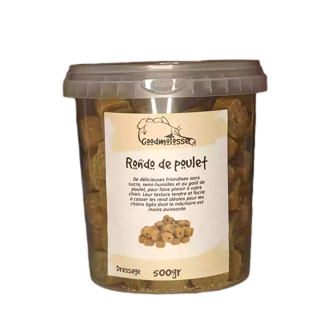 De délicieuses friandises sans sucre, semi-humides et au goût de poulet, pour faire plaisir à votre chien. Leur texture tendre et facile à casser les rend idéales pour les chiens âgés dont la mâchoire est moins puissante.